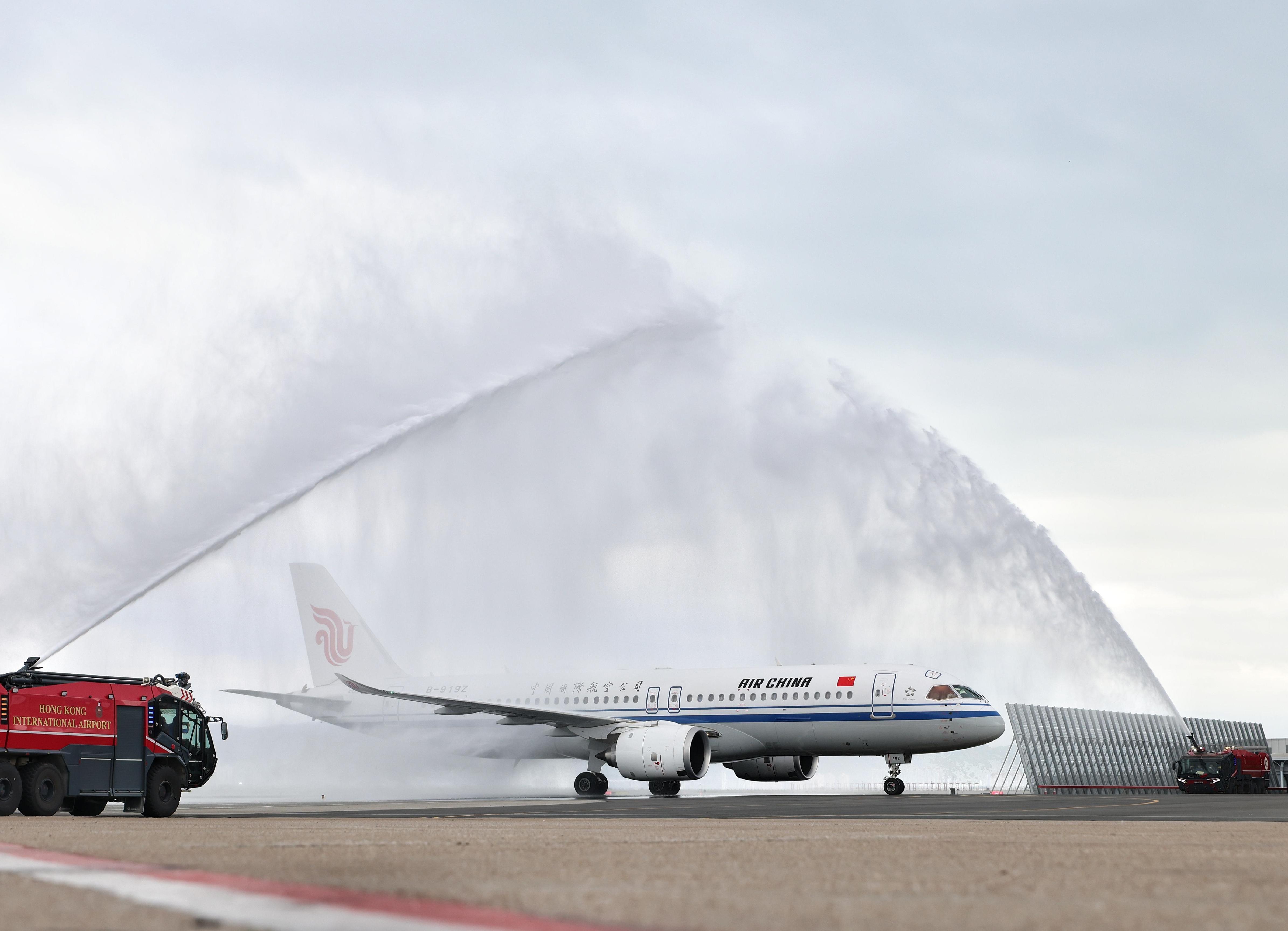 國航C919載旗首飛香港 開啟重飛“兩航起義”北飛光輝航程系列活動